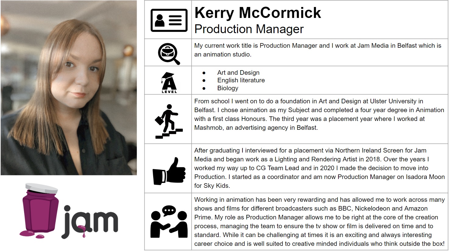 Discover how our former Art & Design students have made their mark in the creative industries. Some examples include: